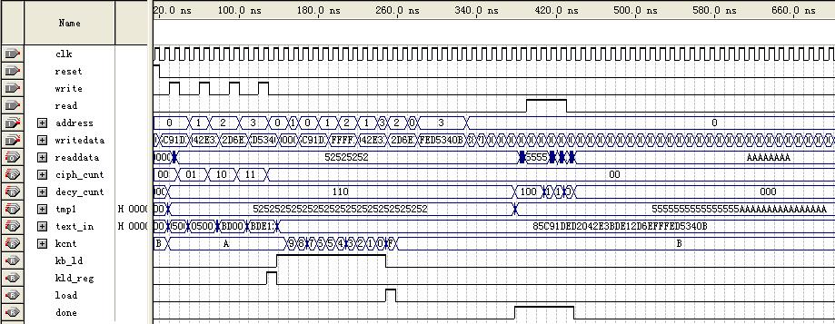 2 AES算法模块分析           对加解密模块进行仿真验证。