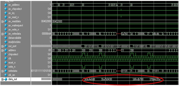 采用自定义指令的方式实现SHA-1算法,并通过Modelsim进行仿真。仿真结果如下所示: